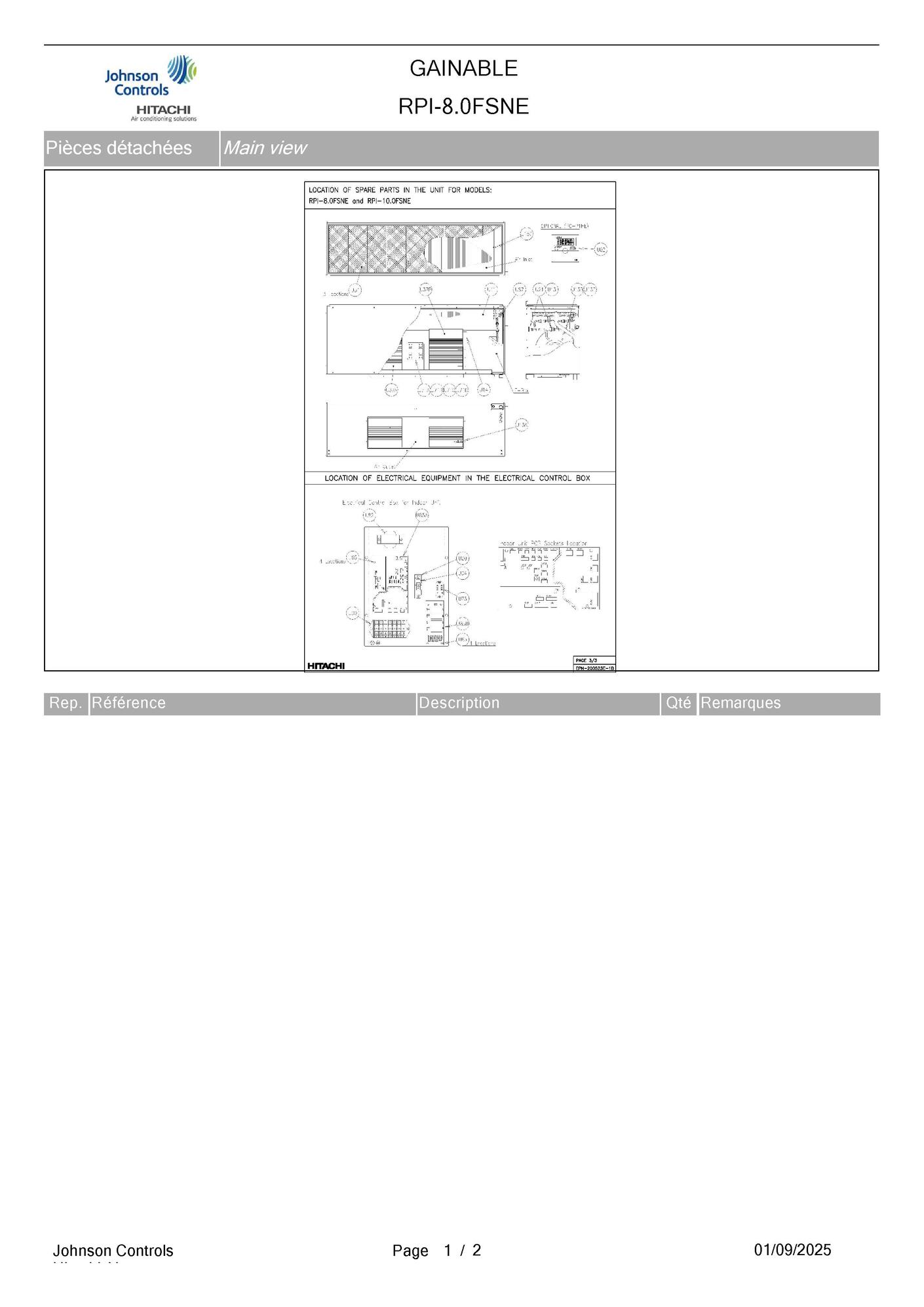 Pièces détachées Unité gainable Hitachi RPI-8.0FSNE chez Pièces Express
