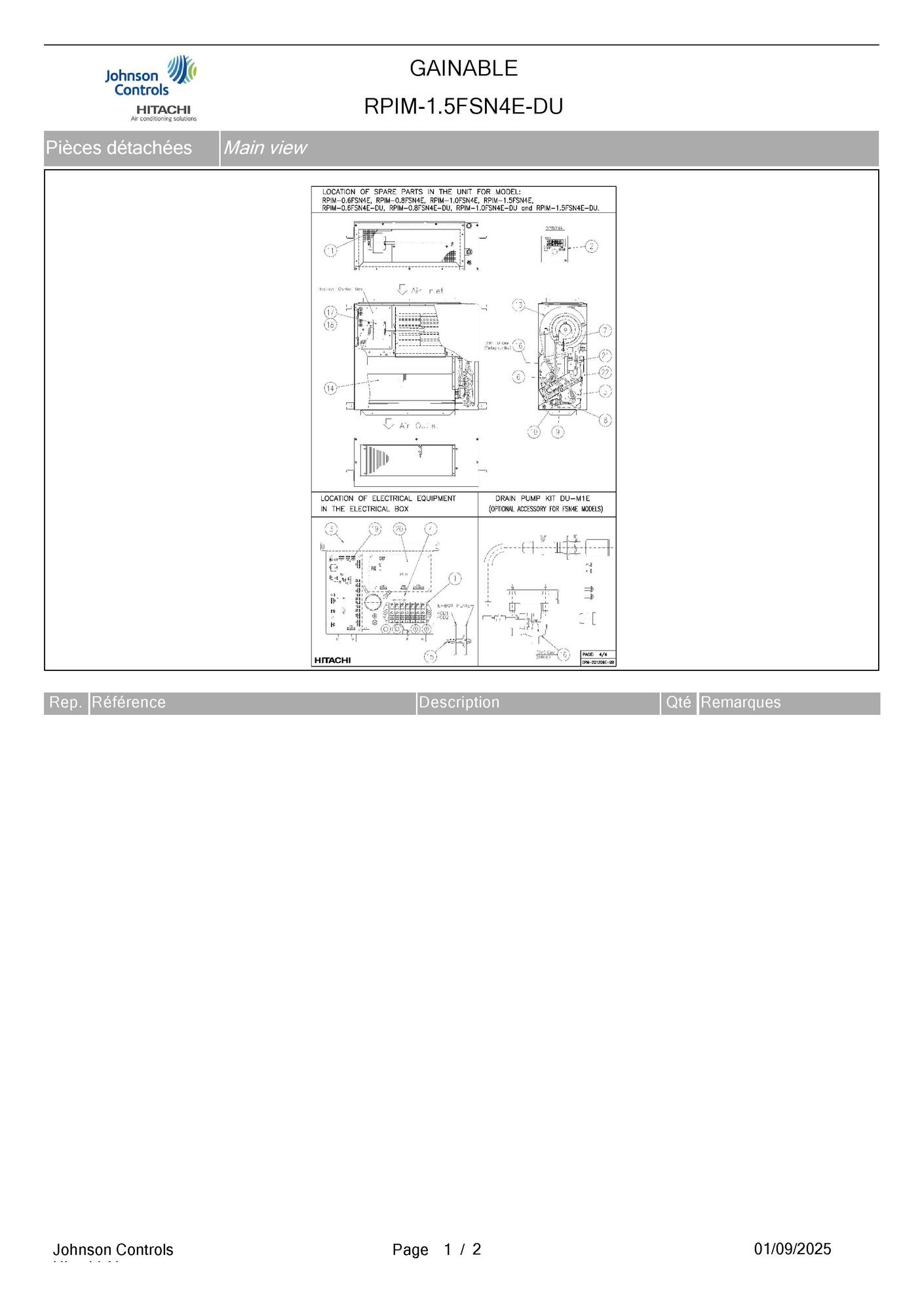 Pièces détachées Unité gainable Hitachi RPIM-1.5FSN4E-DU chez Pièces Express