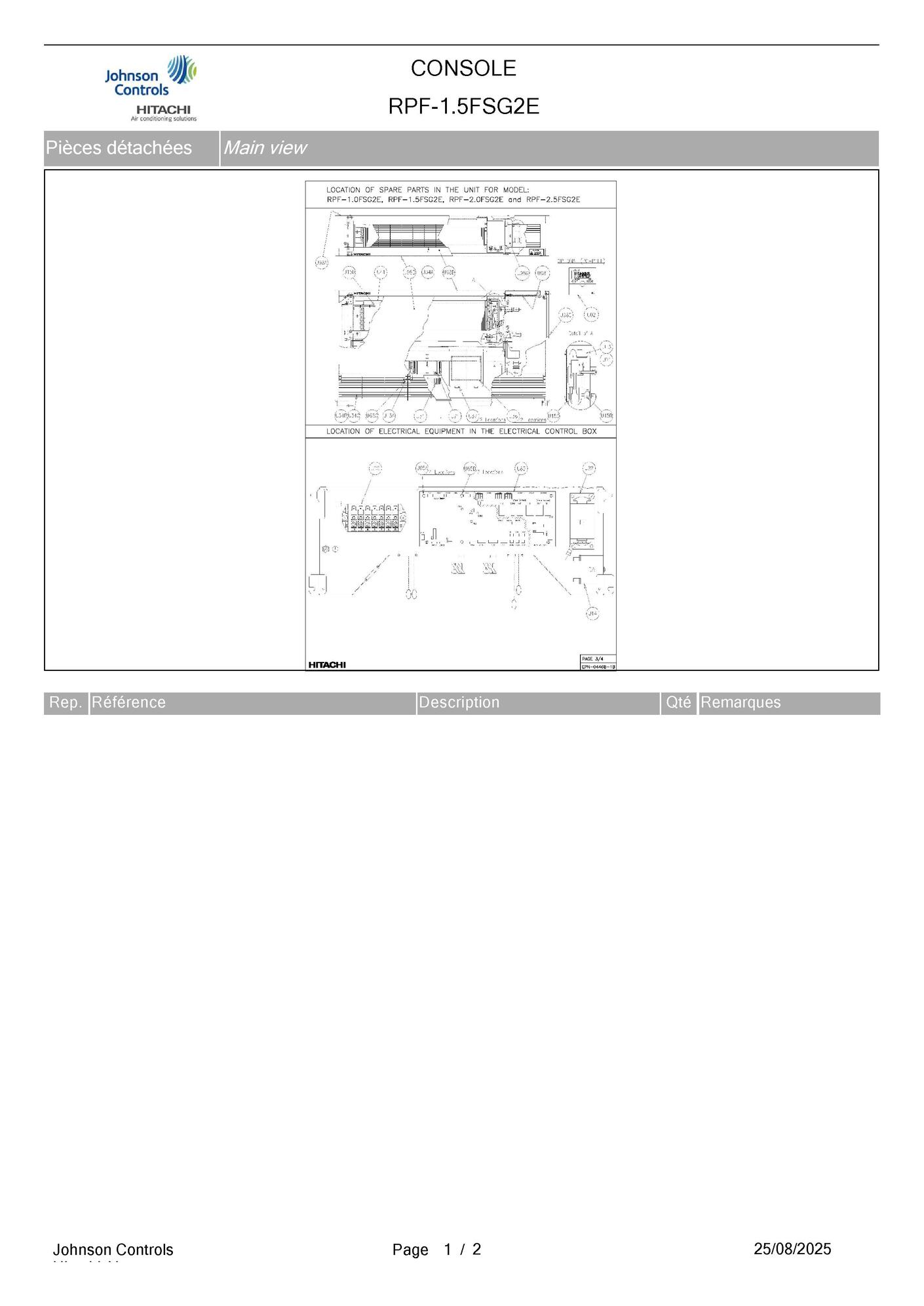 Pièces détachées contenues dans cet appareil Console Hitachi RPF-1.5FSG2E