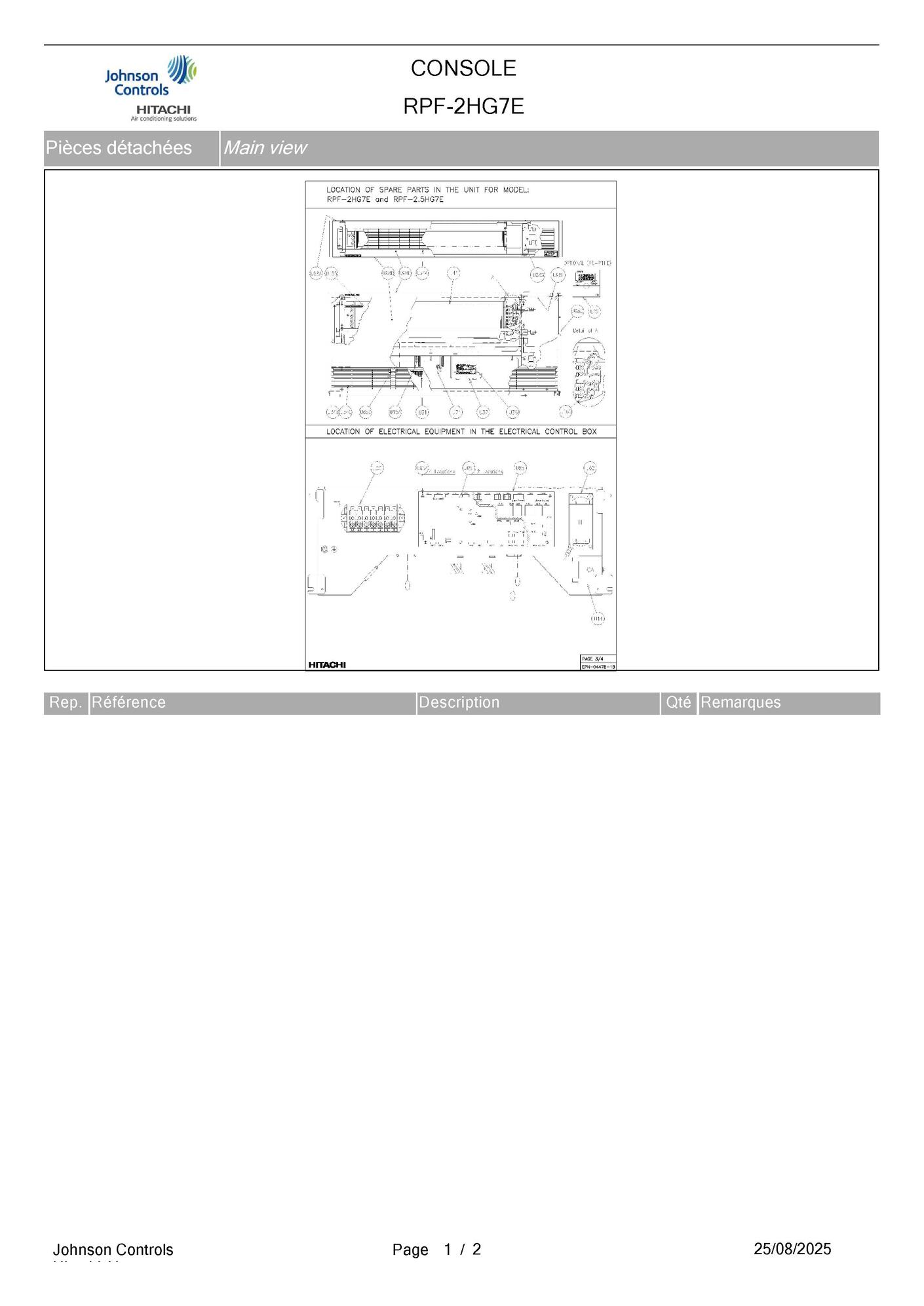 Pièces détachées contenues dans cet appareil Console Hitachi RPF-2HG7E