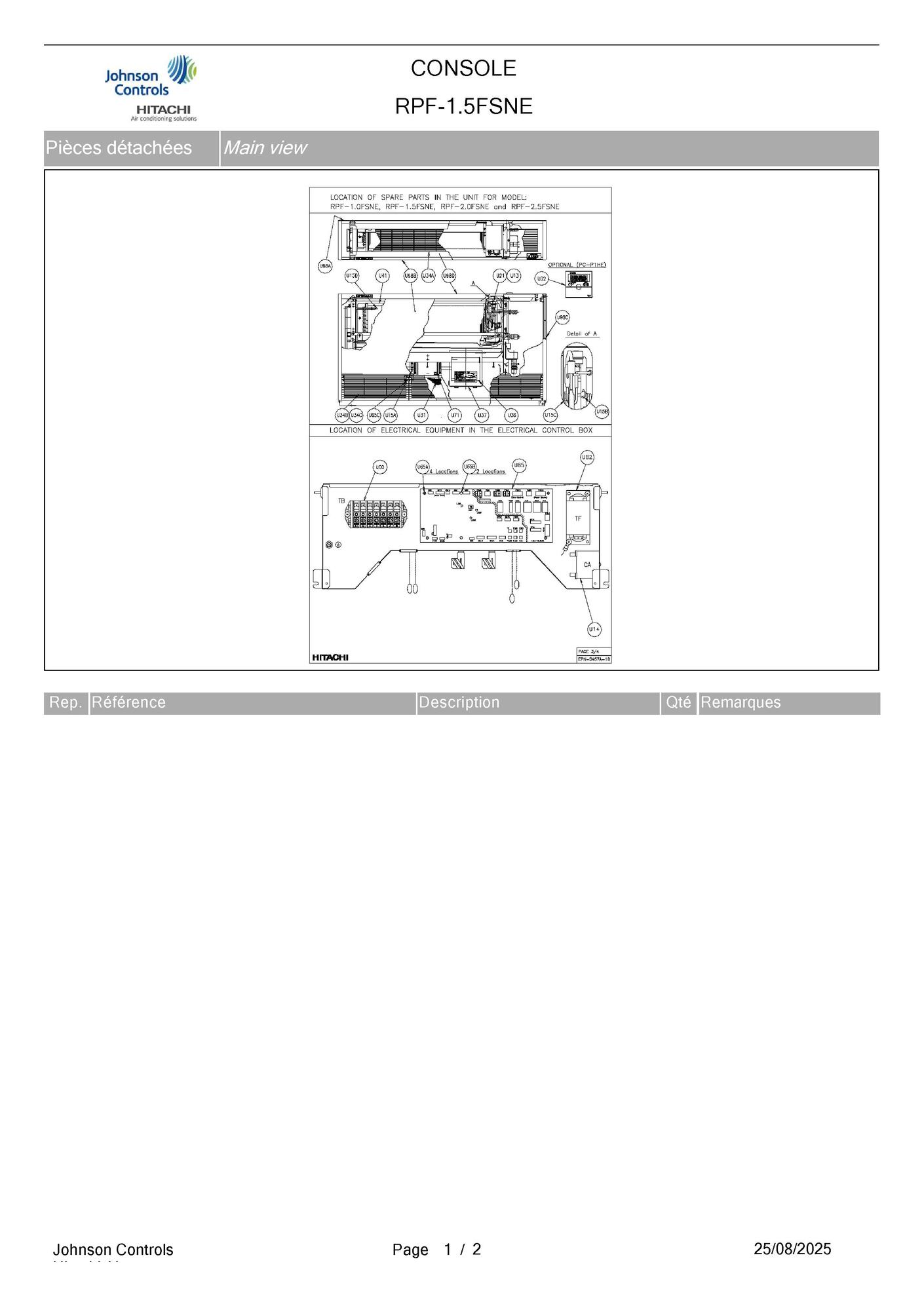 Pièces détachées contenues dans cet appareil Console Hitachi RPF-1.5FSNE