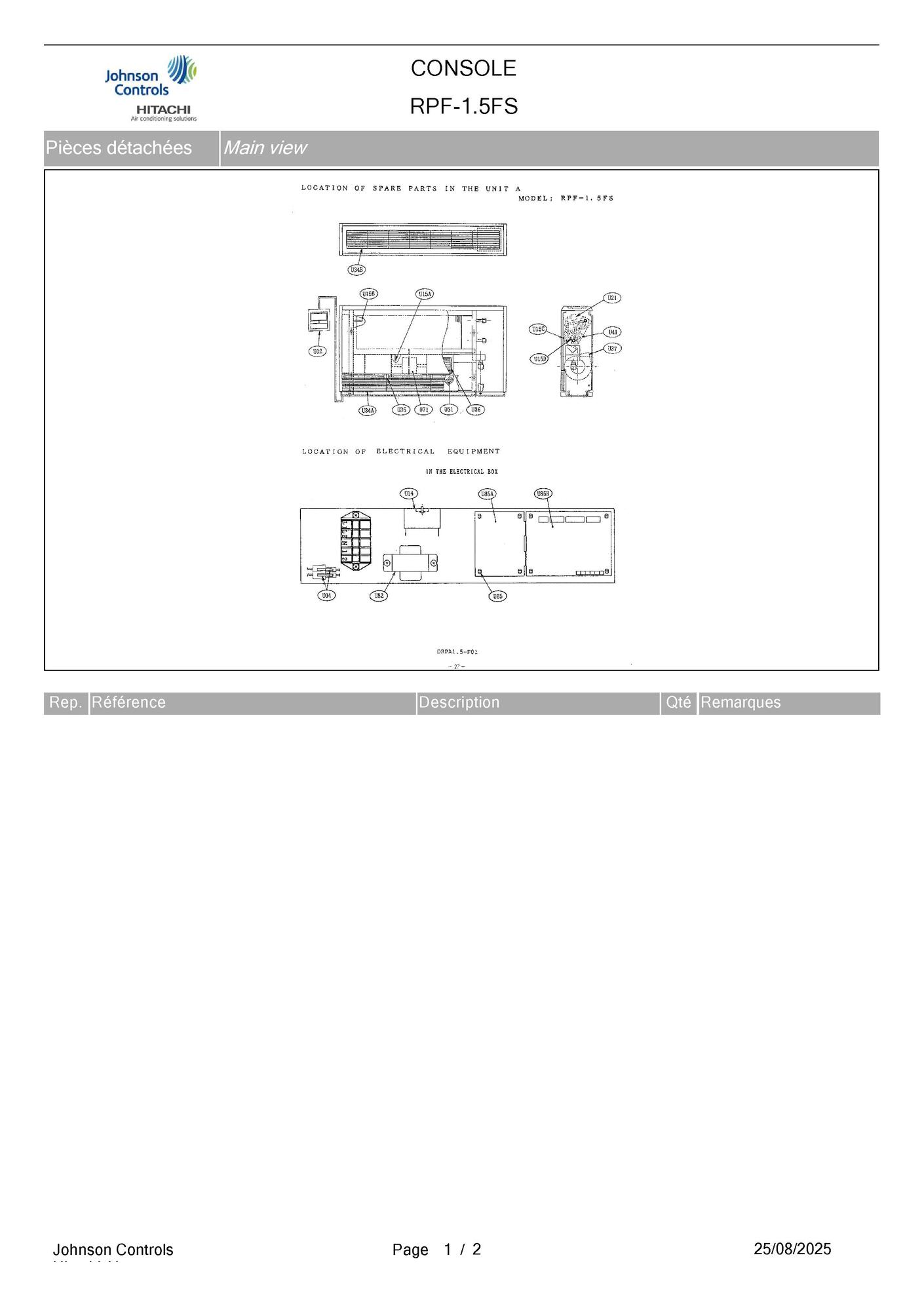 Pièces détachées contenues dans cet appareil Console Hitachi RPF-1.5FS