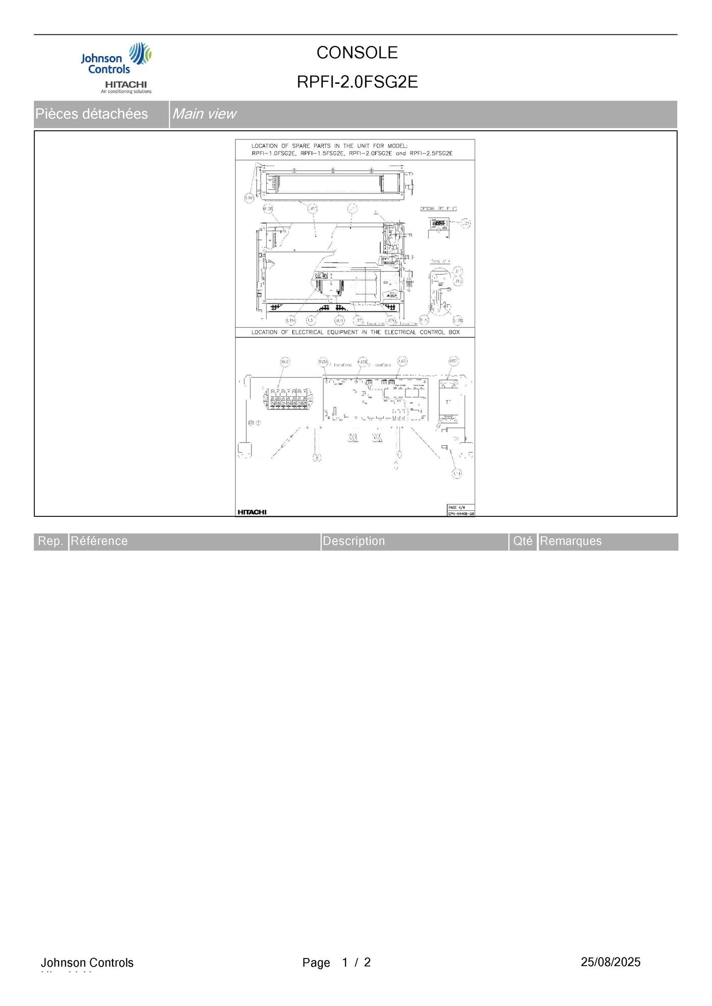 Pièces détachées Console Hitachi RPFI-2.0FSG2E chez Pièces Express