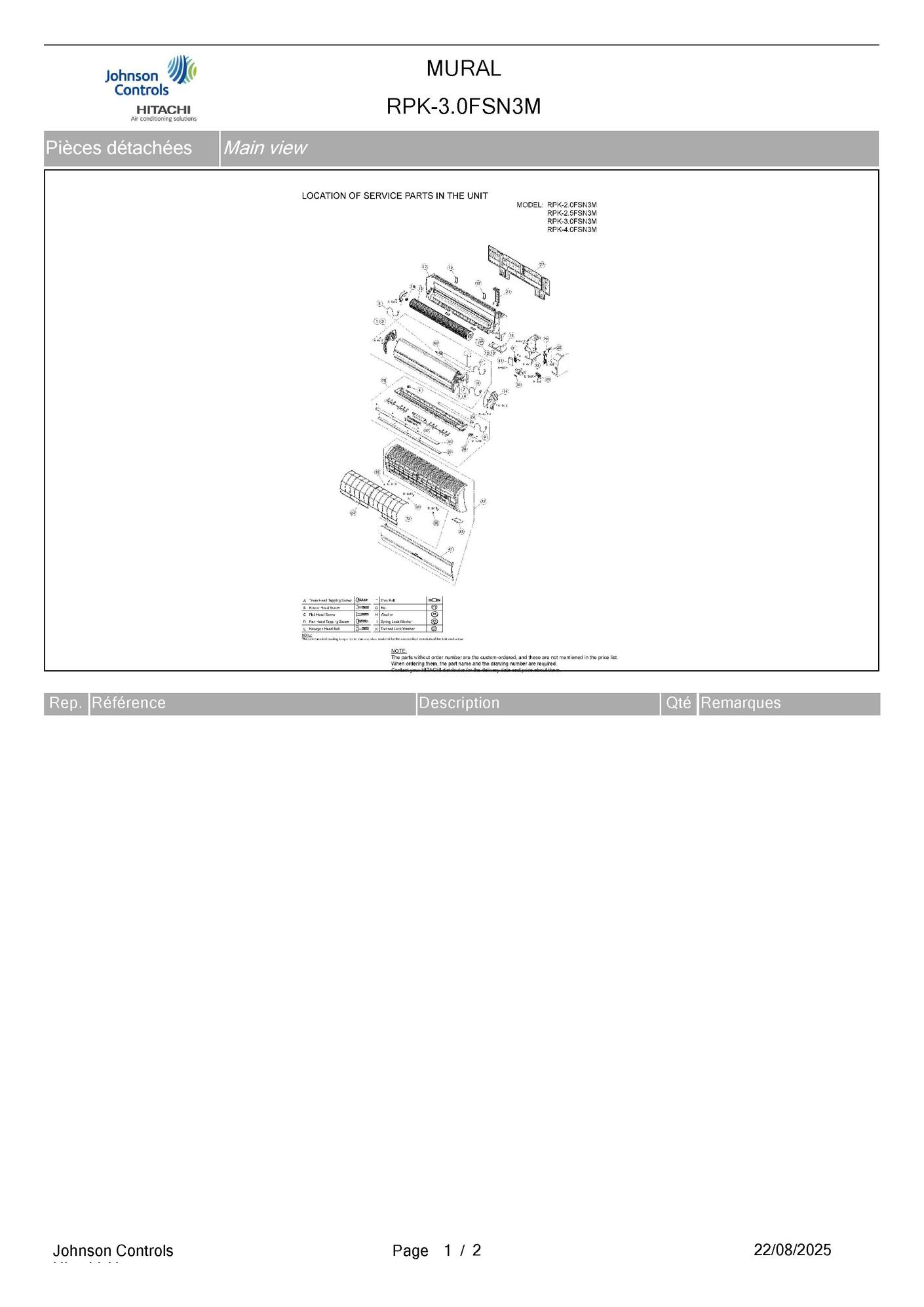 Pièces détachées Unité murale Hitachi RPK-3.0FSN3M chez Pièces Express