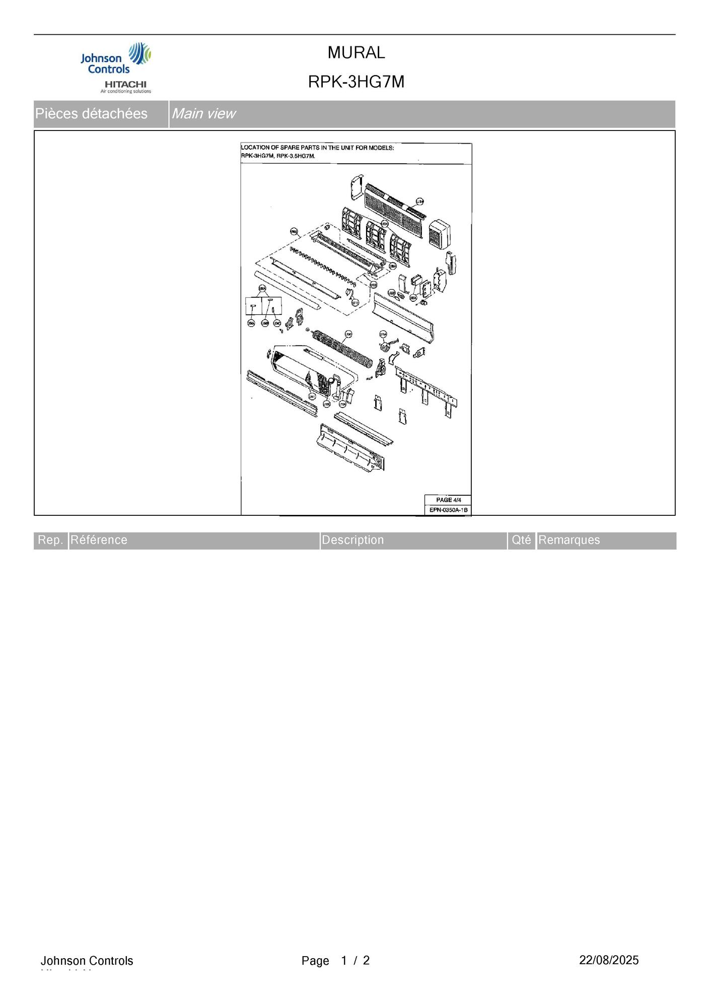 Pièces détachées Unité murale Hitachi RPK-3HG7M chez Pièces Express