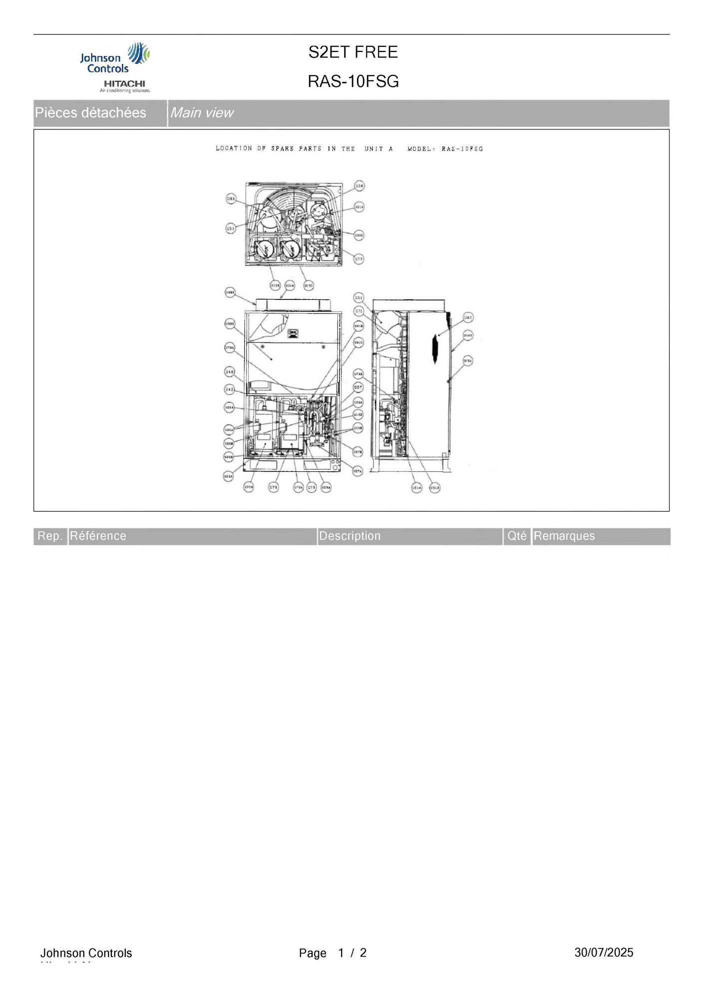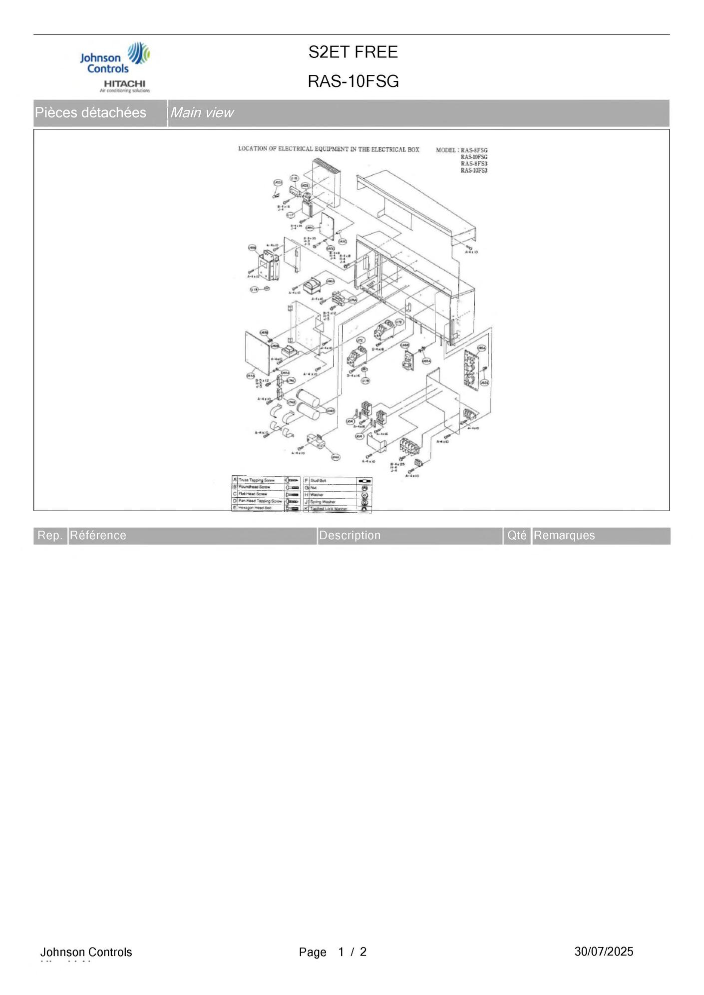 Pièces détachées contenues dans cet appareil Unité externe Hitachi RAS-10FSG (S2ET FREE)