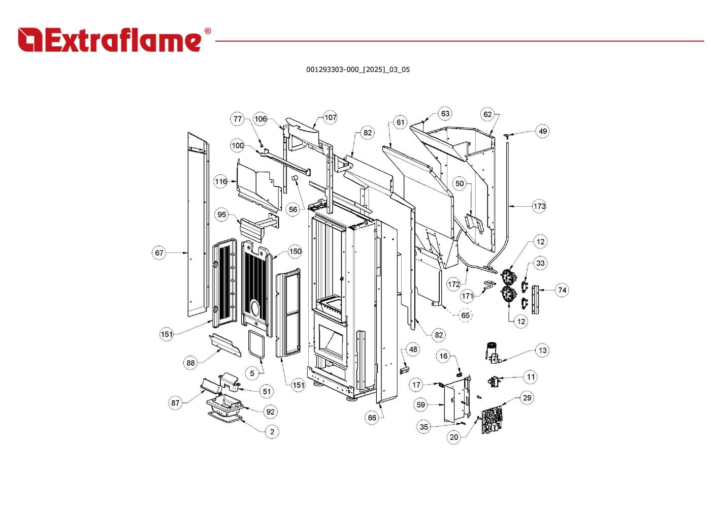 Pièces détachées contenues dans cet appareil Poêle Extraflame Pamela Crystal BLSC (2025)