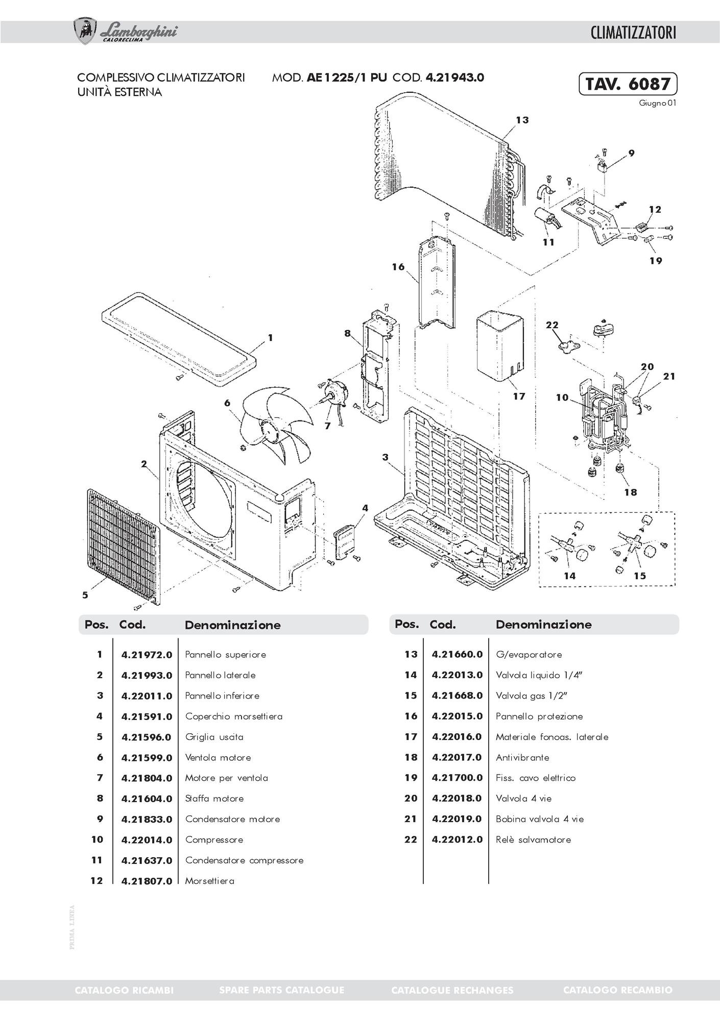 Pièces détachées contenues dans cet appareil Climatisation Lamborghini AE 1225 1 PU 4219720