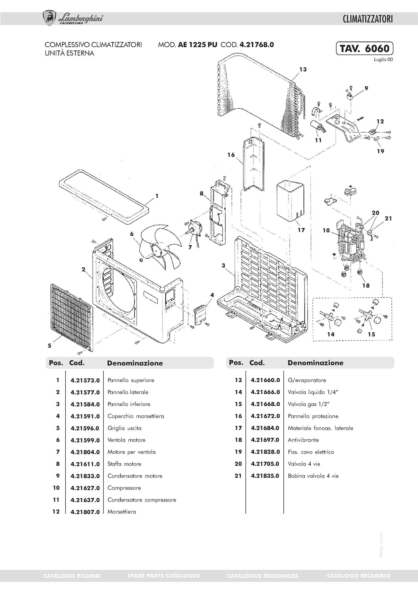 Pièces détachées contenues dans cet appareil Climatisation Lamborghini AE 1225 PU 421S730