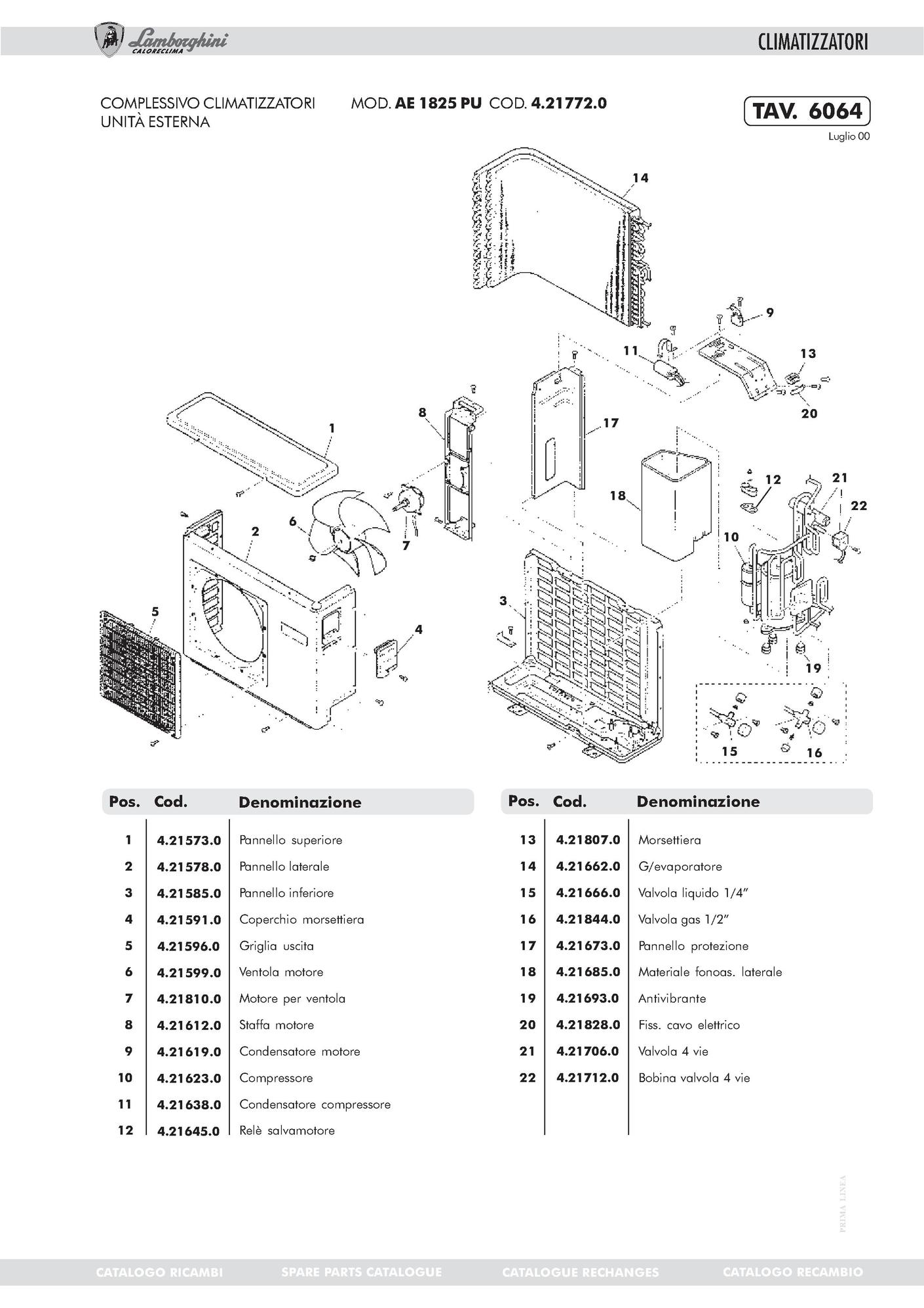 Pièces détachées contenues dans cet appareil Climatisation Lamborghini AE 1825 PU 421S730