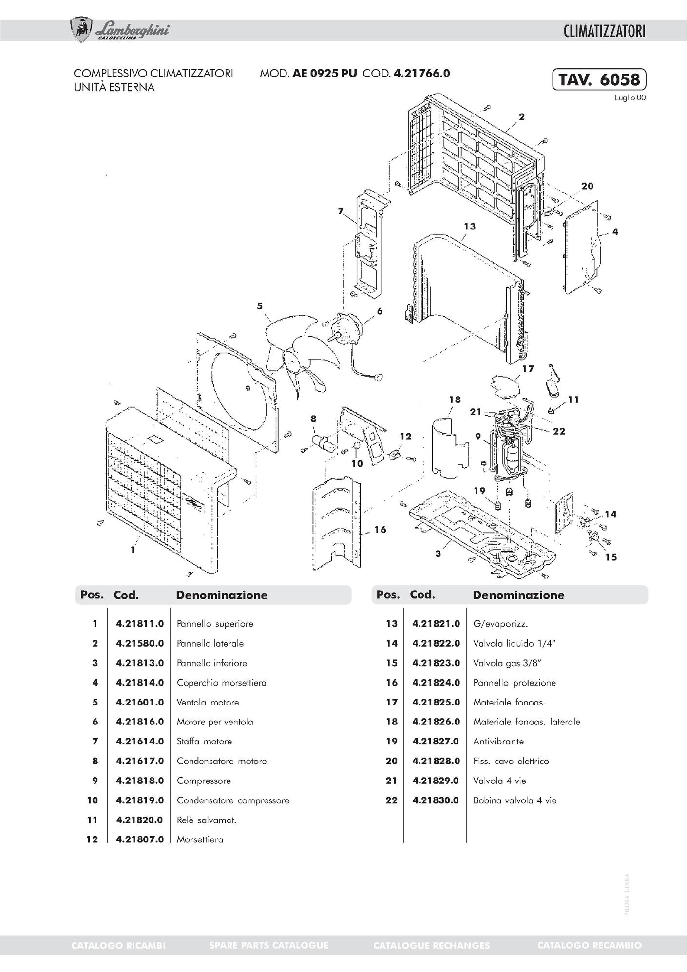 Pièces détachées contenues dans cet appareil Climatisation Lamborghini AE 0925 PU 4218110